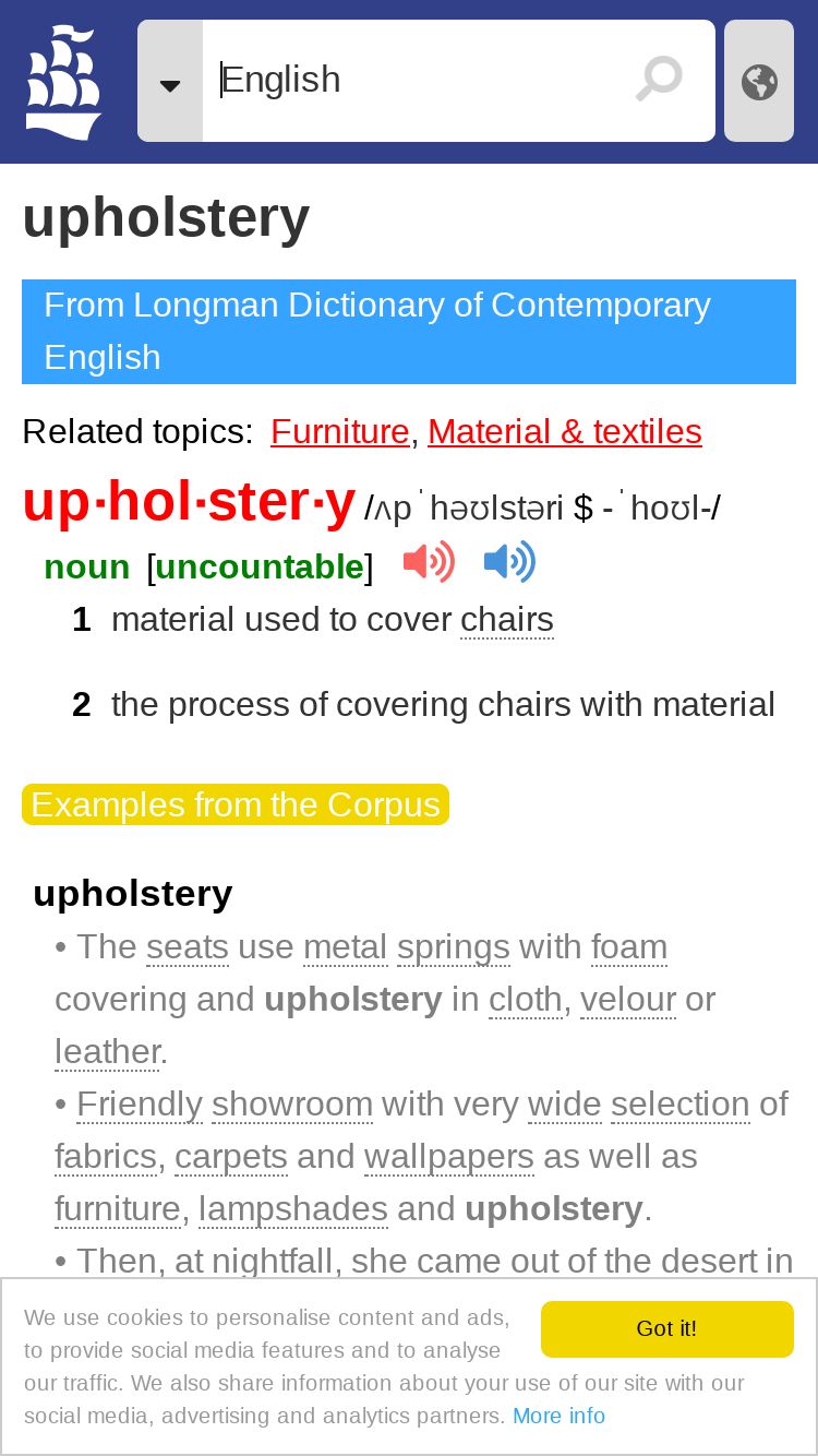 https://www.ldoceonline.com:443/dictionary/upholstery