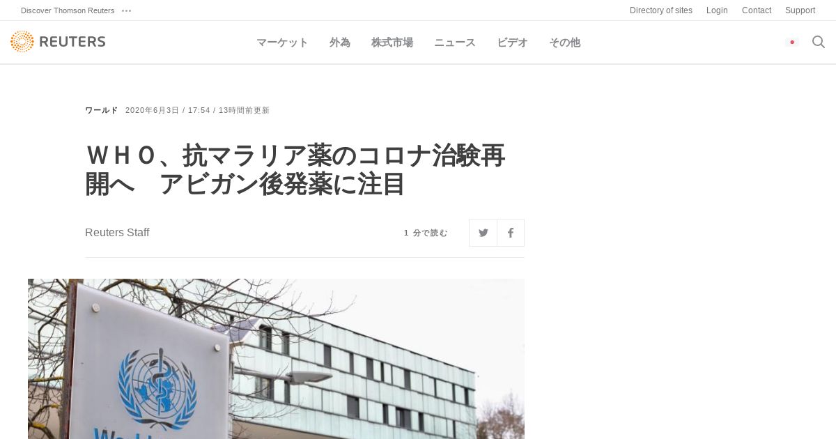 取得元URL: https://jp.reuters.com:443/article/health-coronavirus-who-idJPKBN23A2Y0