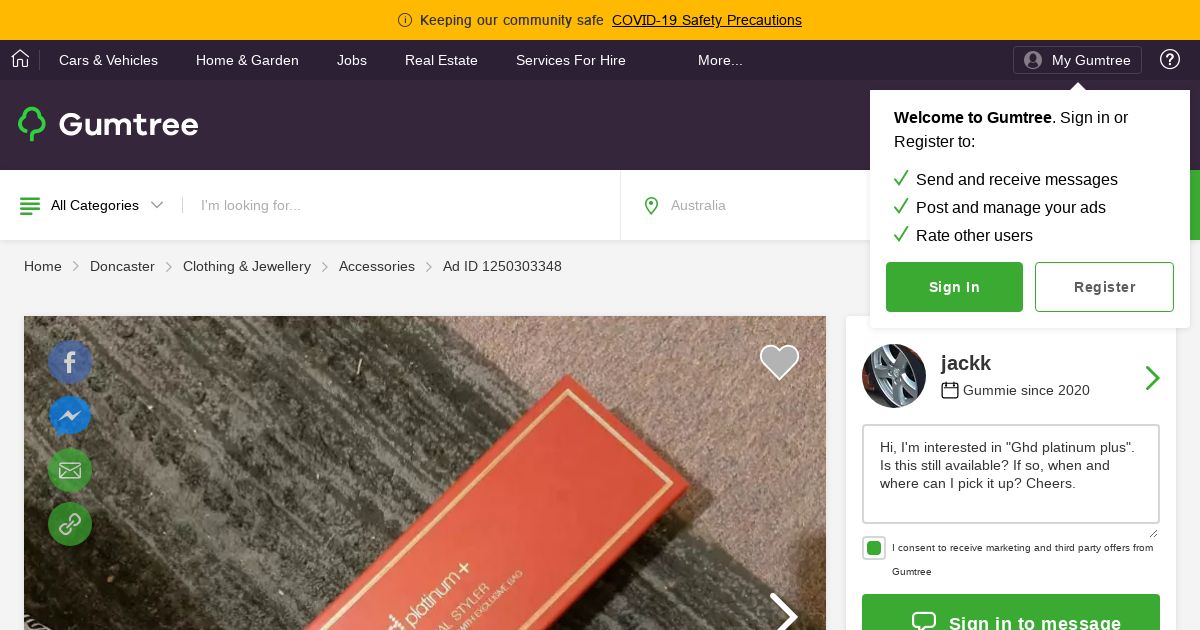 https://www.gumtree.com.au:443/s-ad/doncaster/accessories/ghd-platinum-plus/1250303348