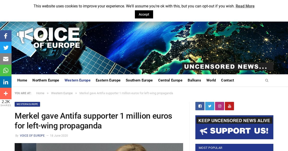 https://voiceofeurope.com:443/2020/06/merkel-gave-antifa-supporter-1-million-euros-for-left-wing-propaganda/