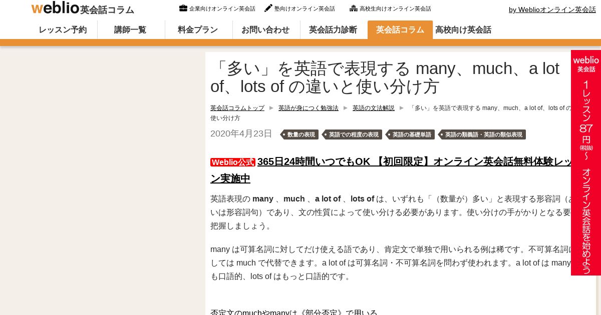 https://eikaiwa.weblio.jp:443/column/study/eigo-bunpo/many_much_lot