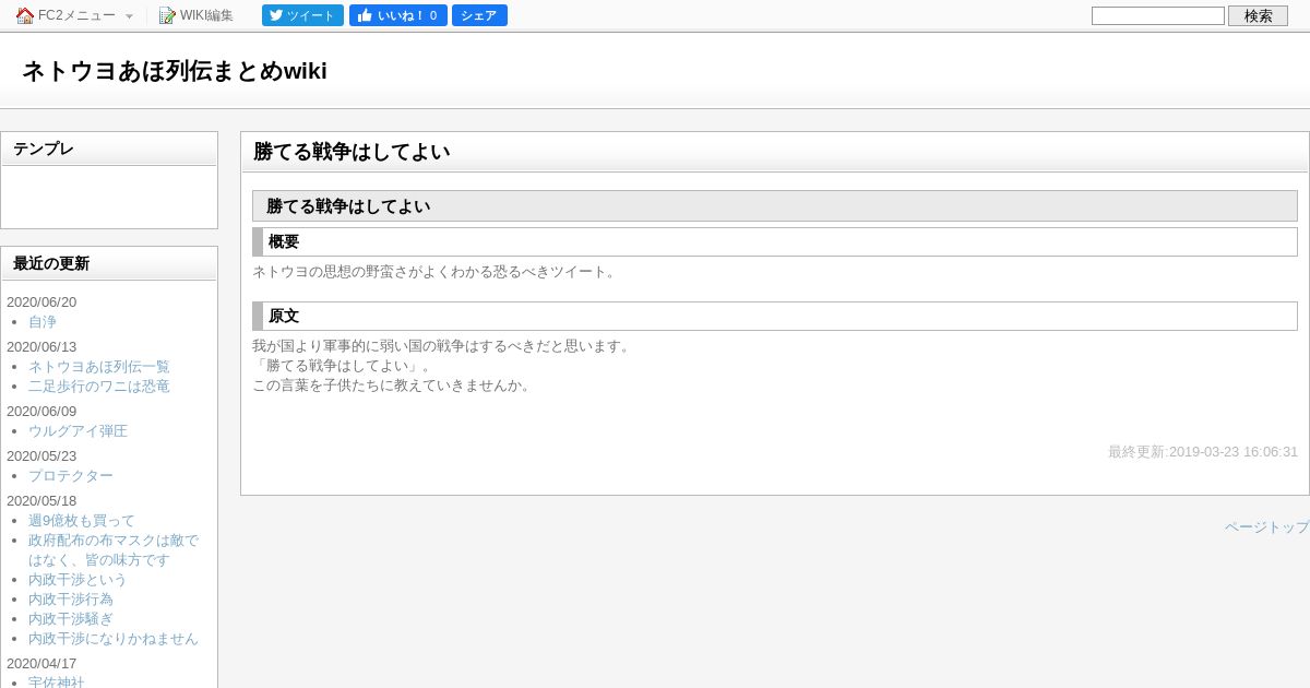 https://demaboku.wiki.fc2.com:443/wiki/%E5%8B%9D%E3%81%A6%E3%82%8B%E6%88%A6%E4%BA%89%E3%81%AF%E3%81%97%E3%81%A6%E3%82%88%E3%81%84