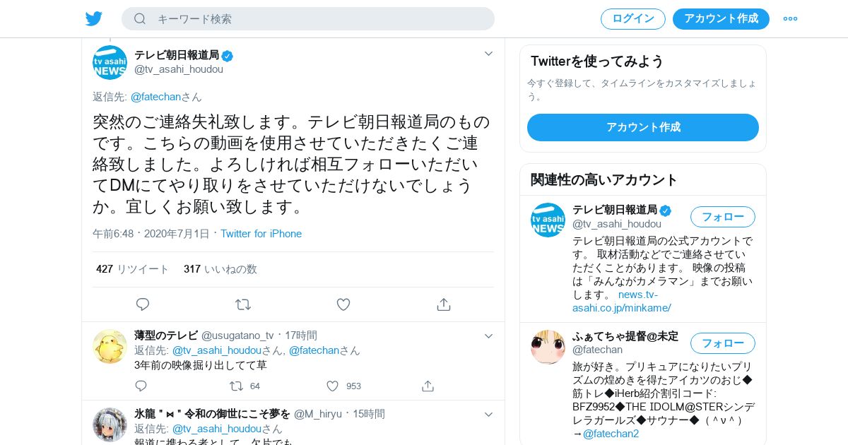https://twitter.com:443/tv_asahi_houdou/status/1278218990586716160