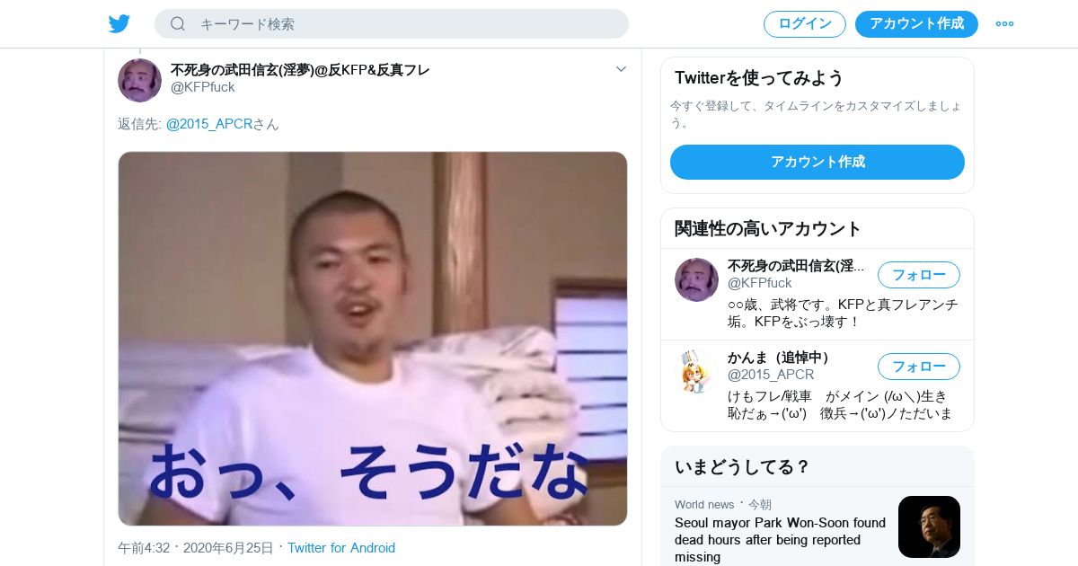 取得元URL: https://twitter.com:443/KFPfuck/status/1276010295454887936