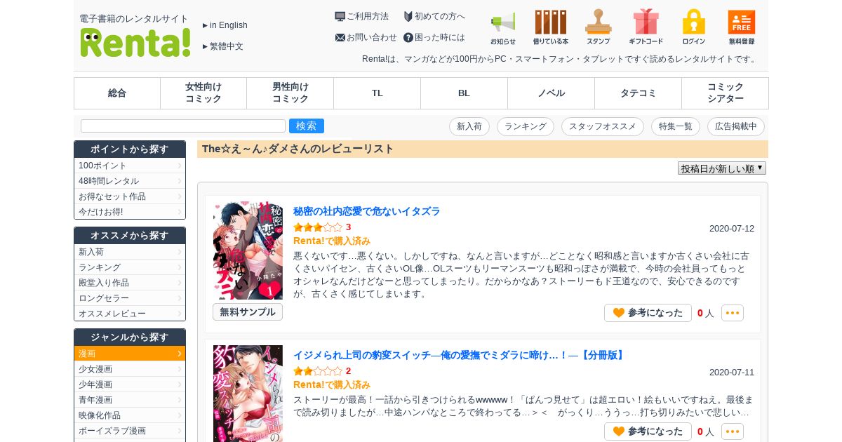 https://renta.papy.co.jp:443/renta/sc/frm/reviewlist/bcnp-The%A1%F9%A4%A8%A1%C1%A4%F3%A2%F6%A5%C0%A5%E1-v2/