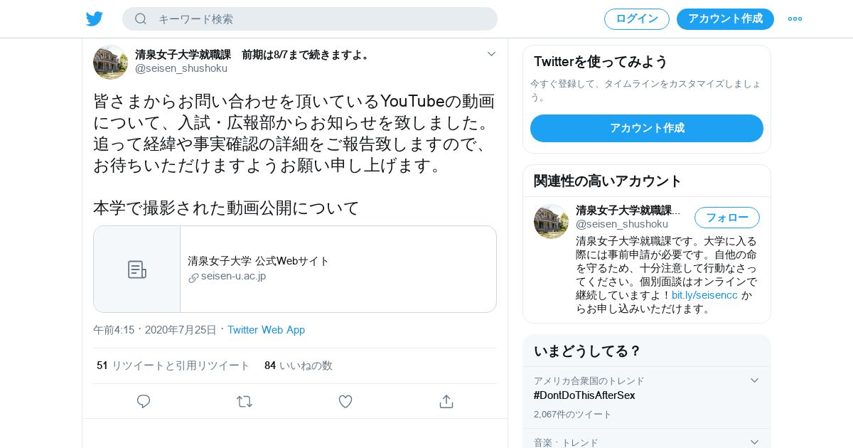 https://twitter.com:443/seisen_shushoku/status/1286877698040557568