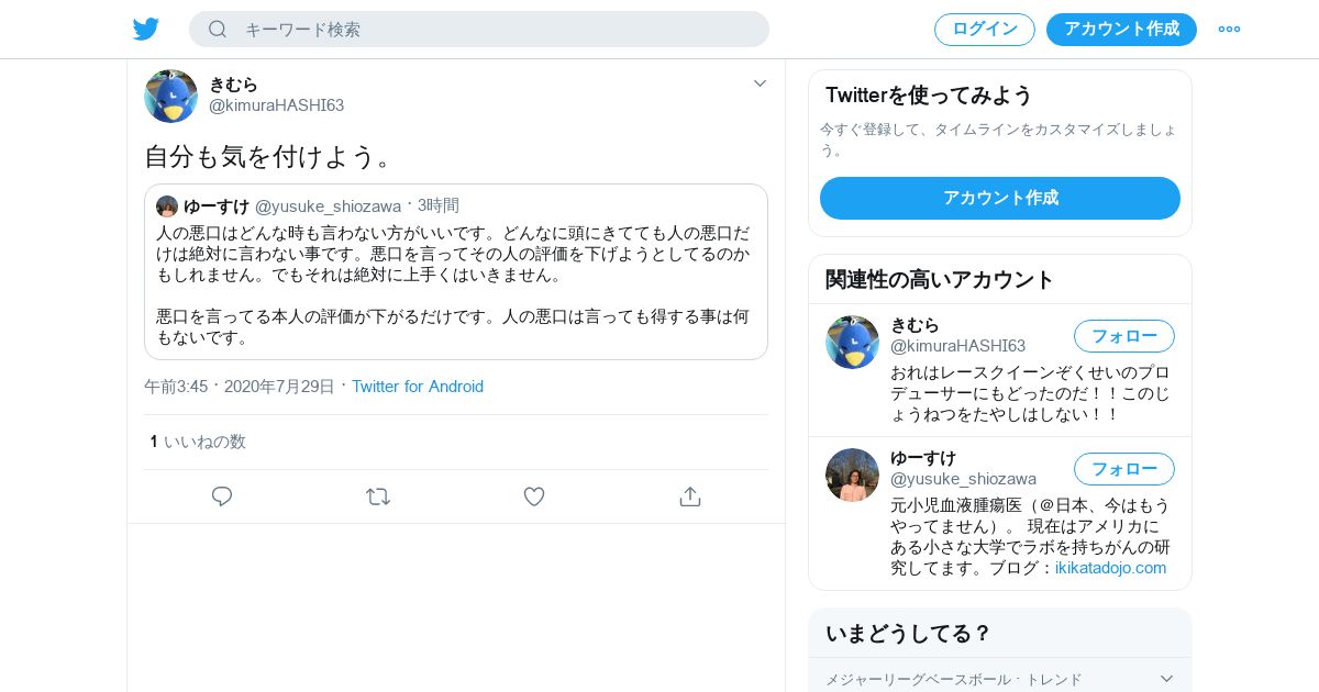 https://twitter.com:443/kimuraHASHI63/status/1288319794190540802