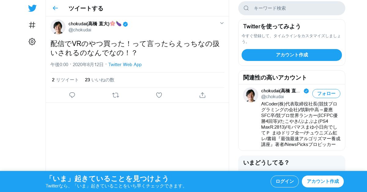 取得元URL: https://twitter.com:443/chokudai/status/1293517710953820161