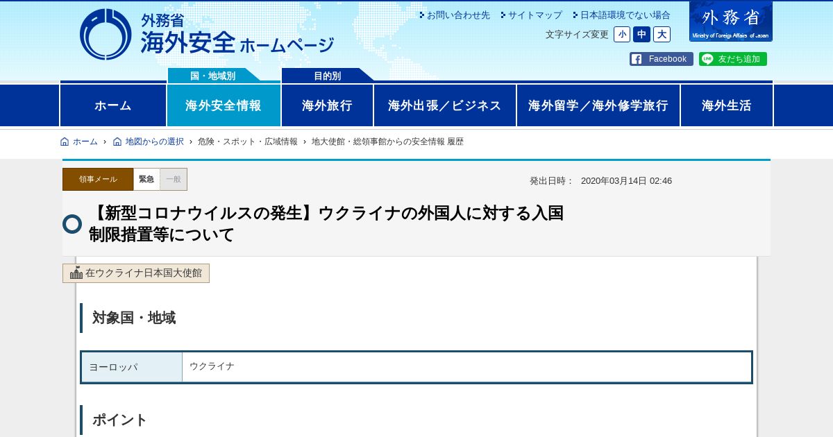 https://www.anzen.mofa.go.jp:443/od/ryojiMailDetail.html?keyCd=81345