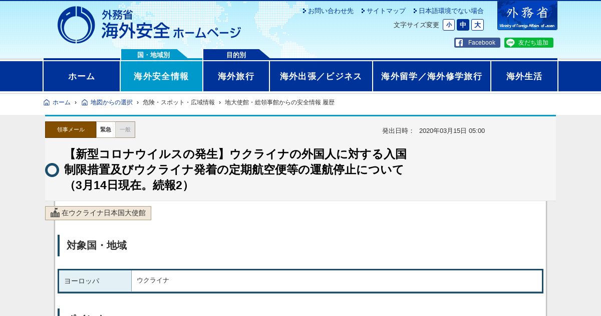 https://www.anzen.mofa.go.jp:443/od/ryojiMailDetail.html?keyCd=81509