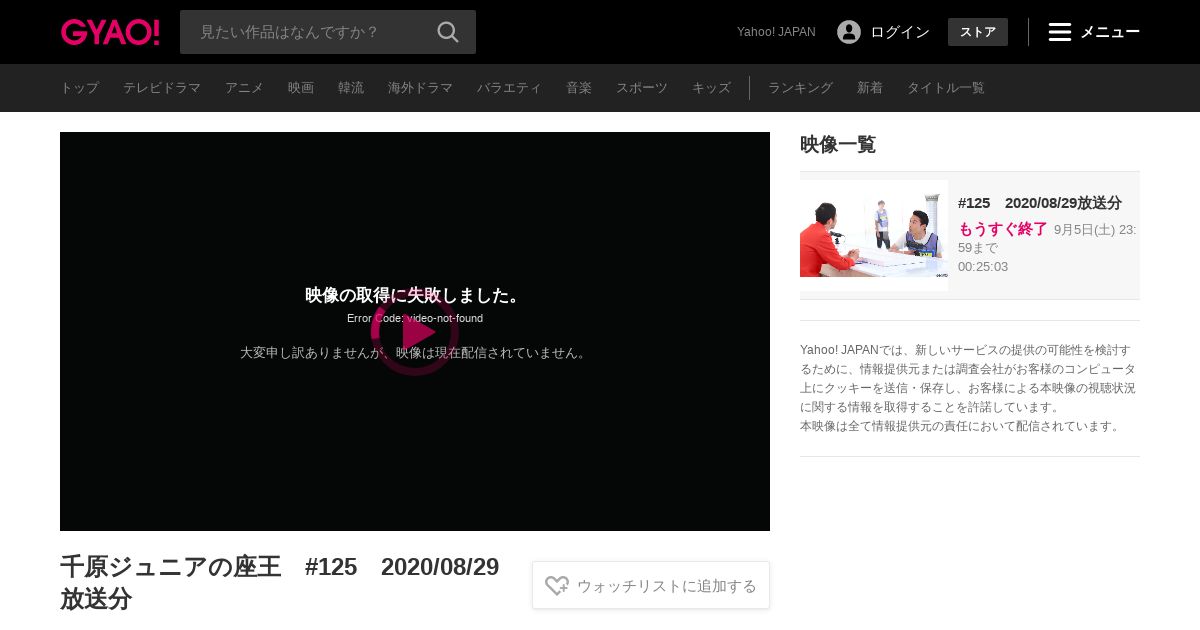 https://gyao.yahoo.co.jp:443/title/%E5%8D%83%E5%8E%9F%E3%82%B8%E3%83%A5%E3%83%8B%E3%82%A2%E3%81%AE%E5%BA%A7%E7%8E%8B/5c134ec7-2e65-4b20-8c18-06eb020f2563