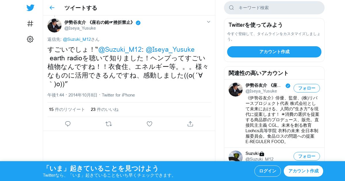 取得元URL: https://twitter.com:443/Iseya_Yusuke/status/519845805755072513
