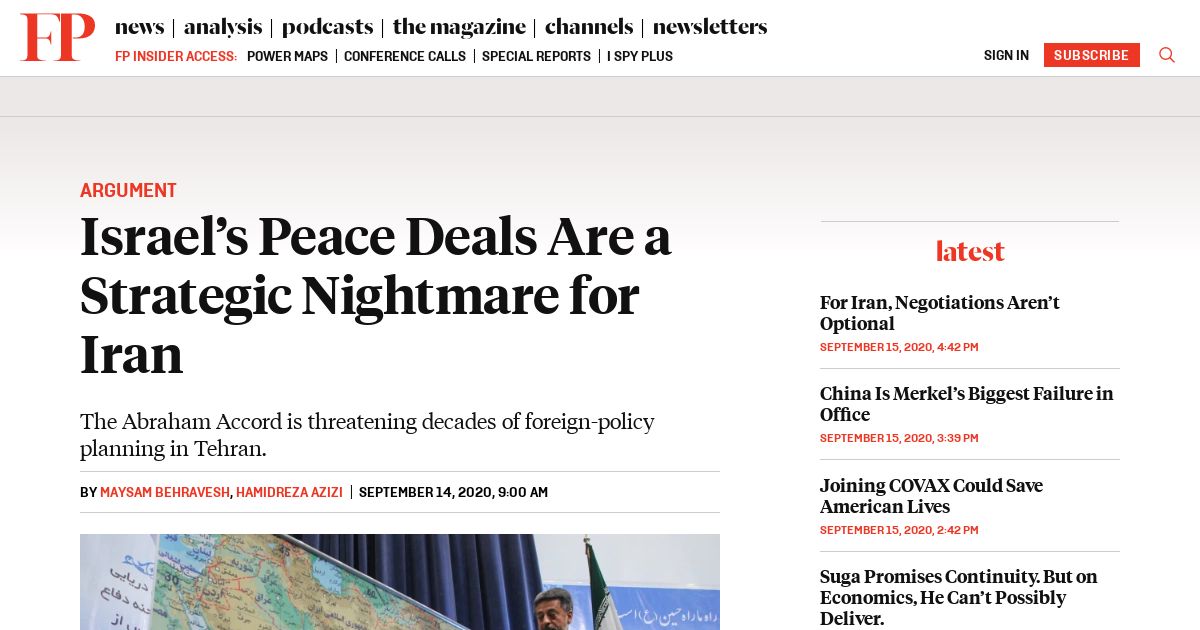 https://foreignpolicy.com:443/2020/09/14/israels-peace-deals-are-a-strategic-nightmare-for-iran/