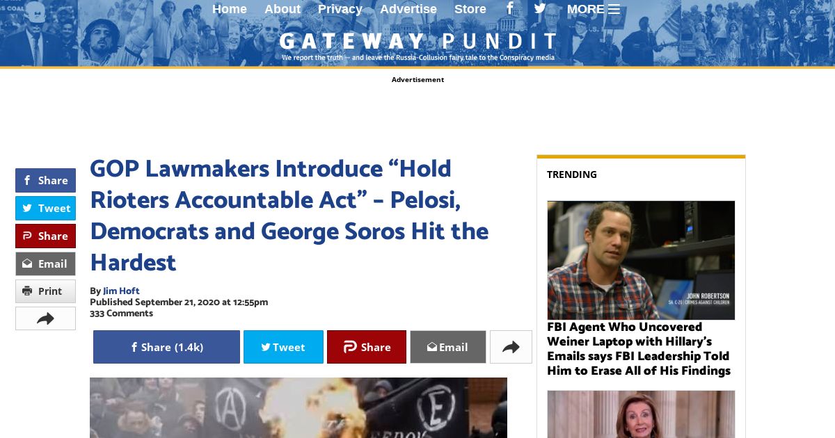 https://www.thegatewaypundit.com:443/2020/09/gop-lawmakers-introduce-hold-rioters-accountable-act-pelosi-democrats-george-soros-hit-hardest/