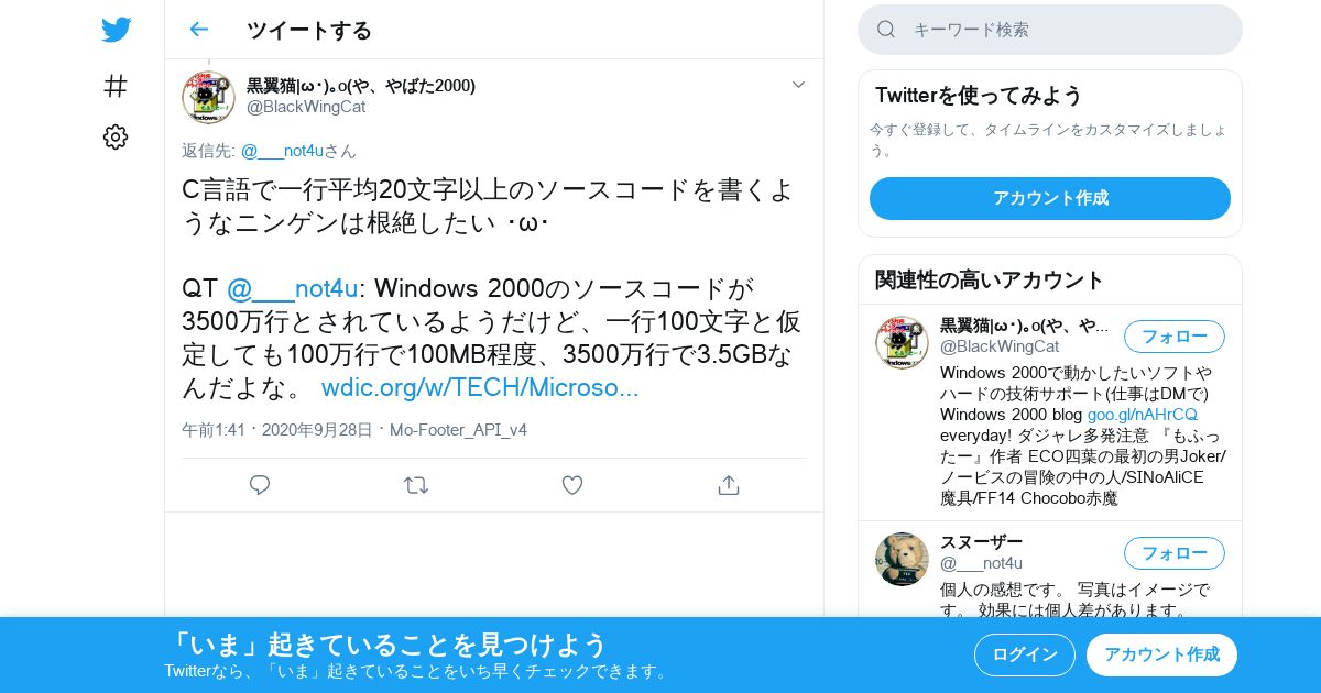 取得元URL: https://twitter.com:443/BlackWingCat/status/1310394267844501504