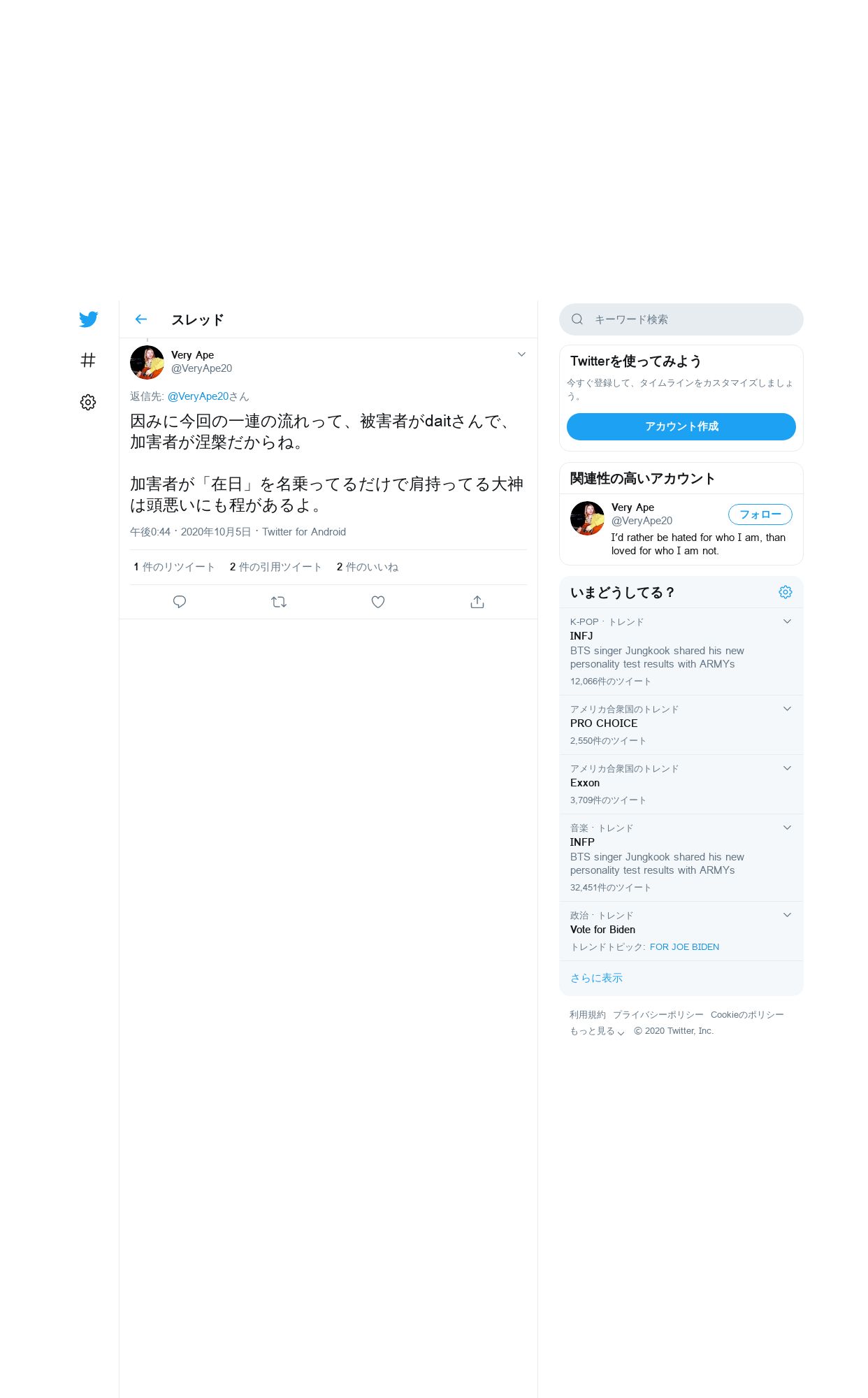 取得元URL: https://twitter.com:443/veryape20/status/1313097812372930560