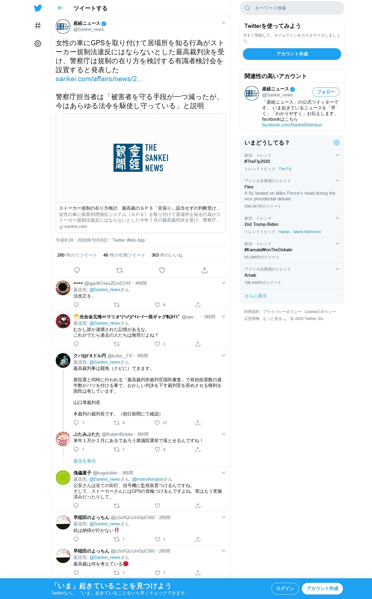 https://twitter.com:443/Sankei_news/status/1314119553173975041