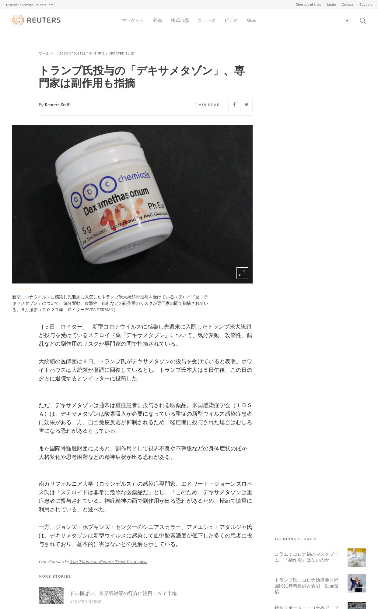 取得元URL: https://jp.reuters.com:443/article/health-coronavirus-trump-steroid-idJPL4N2GW33T