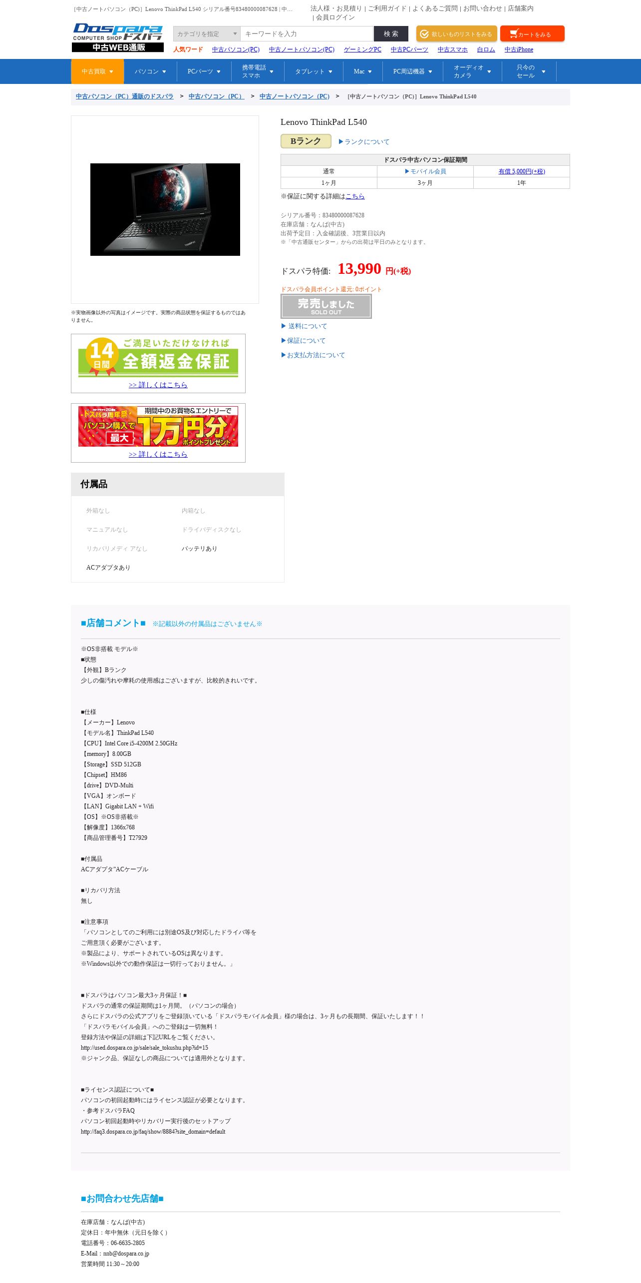 https://used.dospara.co.jp:443/sale/detail.php?serialno=83480000087628