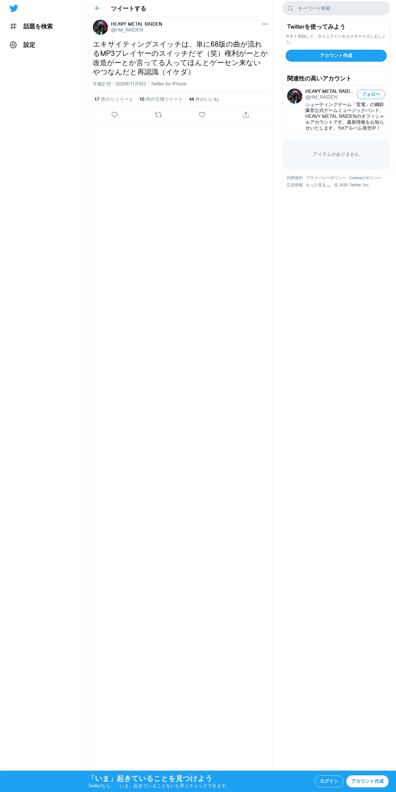 取得元URL: https://twitter.com:443/HM_RAIDEN/status/1325440625873879041