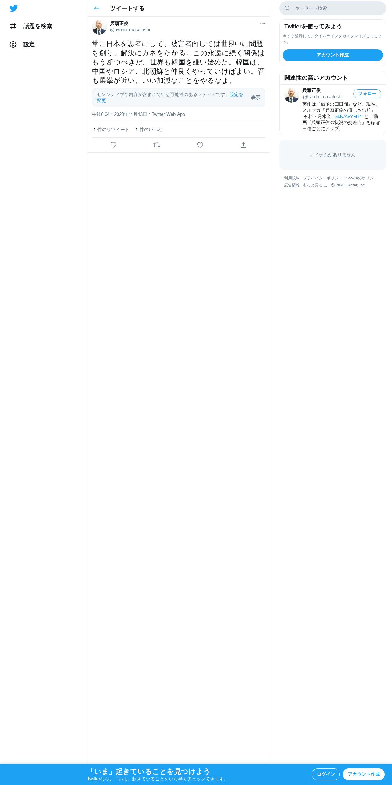https://twitter.com:443/hyodo_masatoshi/status/1327220717201473538