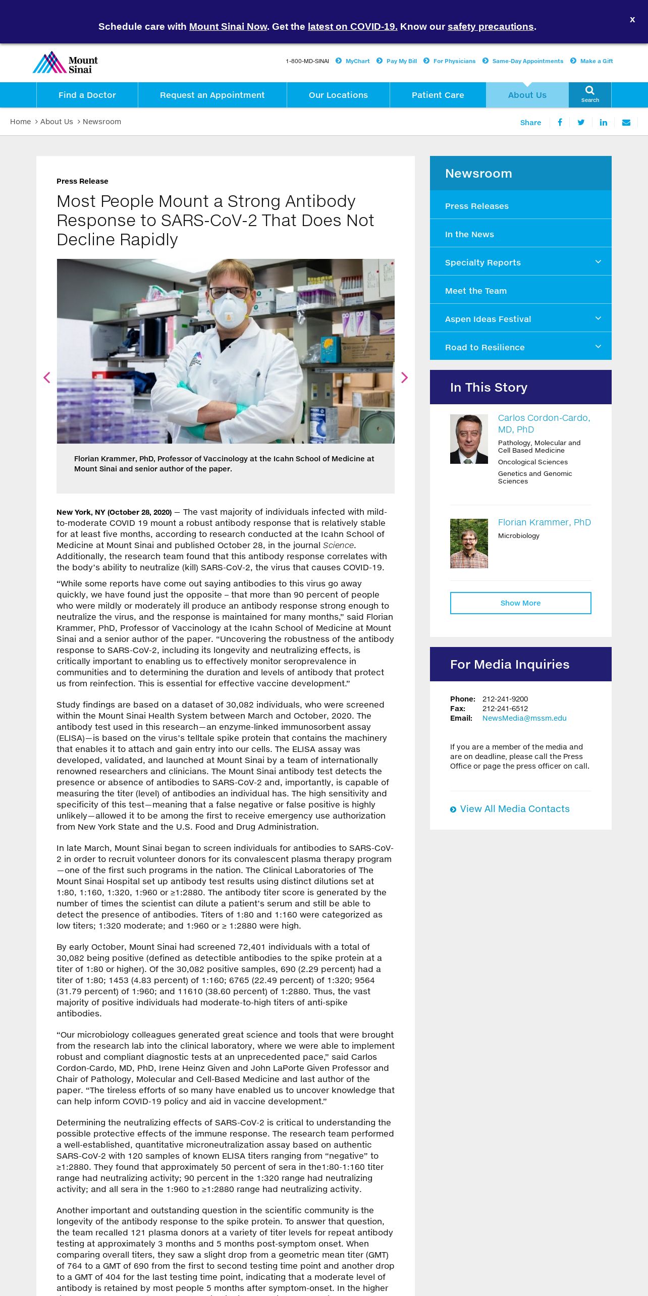https://www.mountsinai.org:443/about/newsroom/2020/most-people-mount-a-strong-antibody-response-to-sarscov2-that-does-not-decline-rapidly-pr