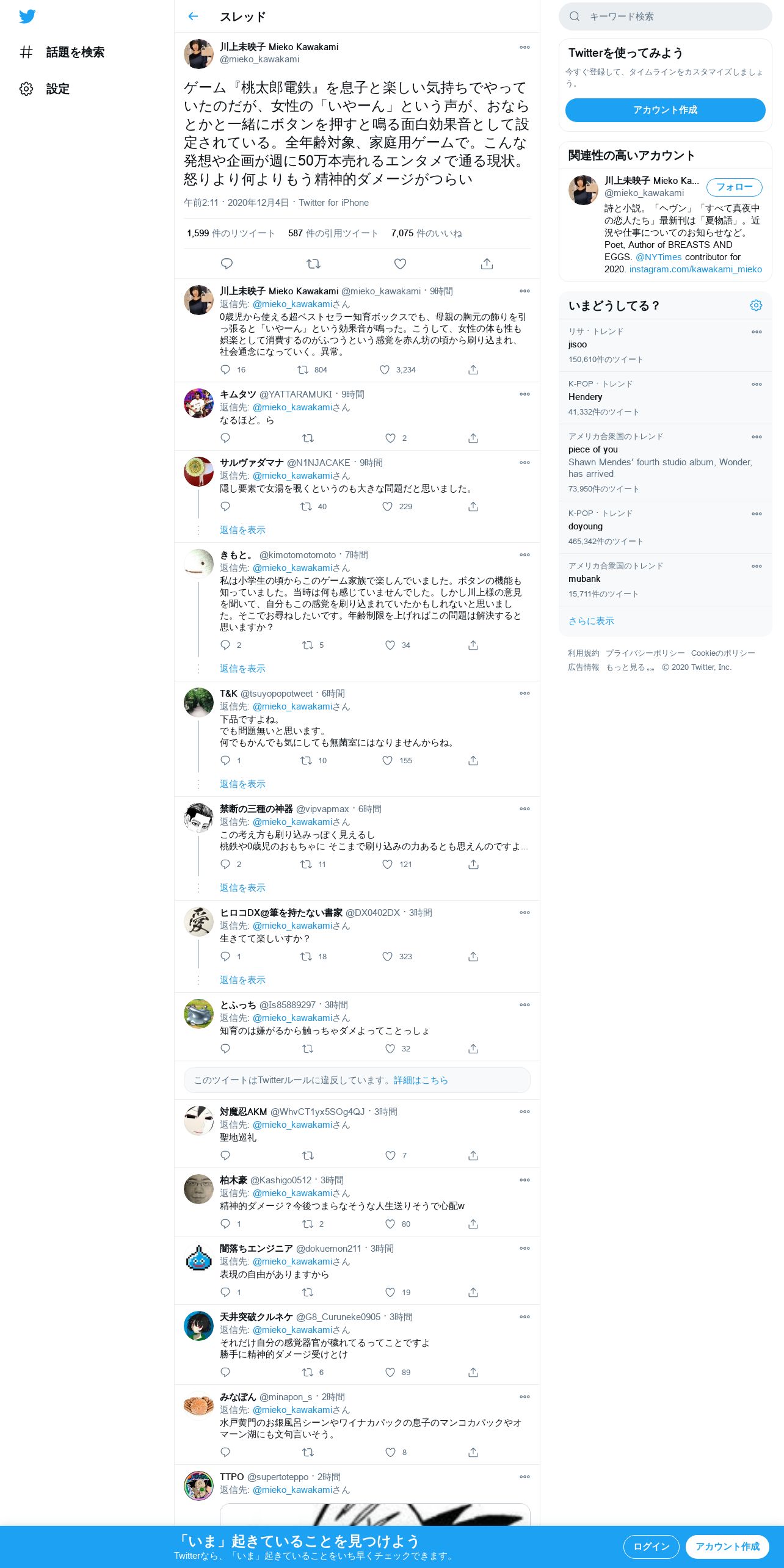 取得元URL: https://twitter.com:443/mieko_kawakami/status/1334681788677943296