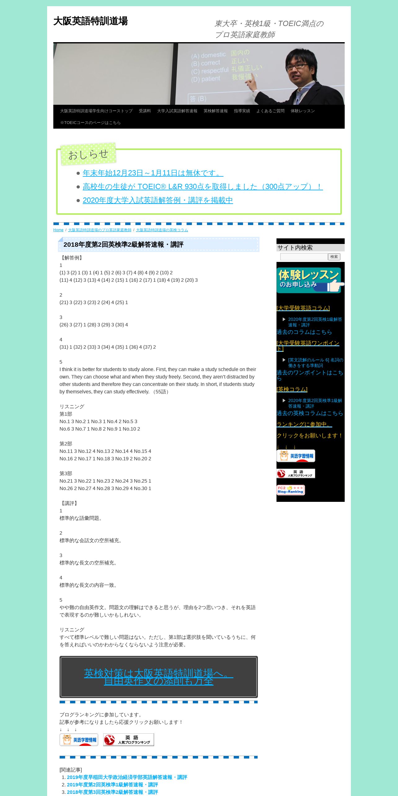 https://nagoya-eigotokkun.com:443/eiken-2018-2-pre2nd/