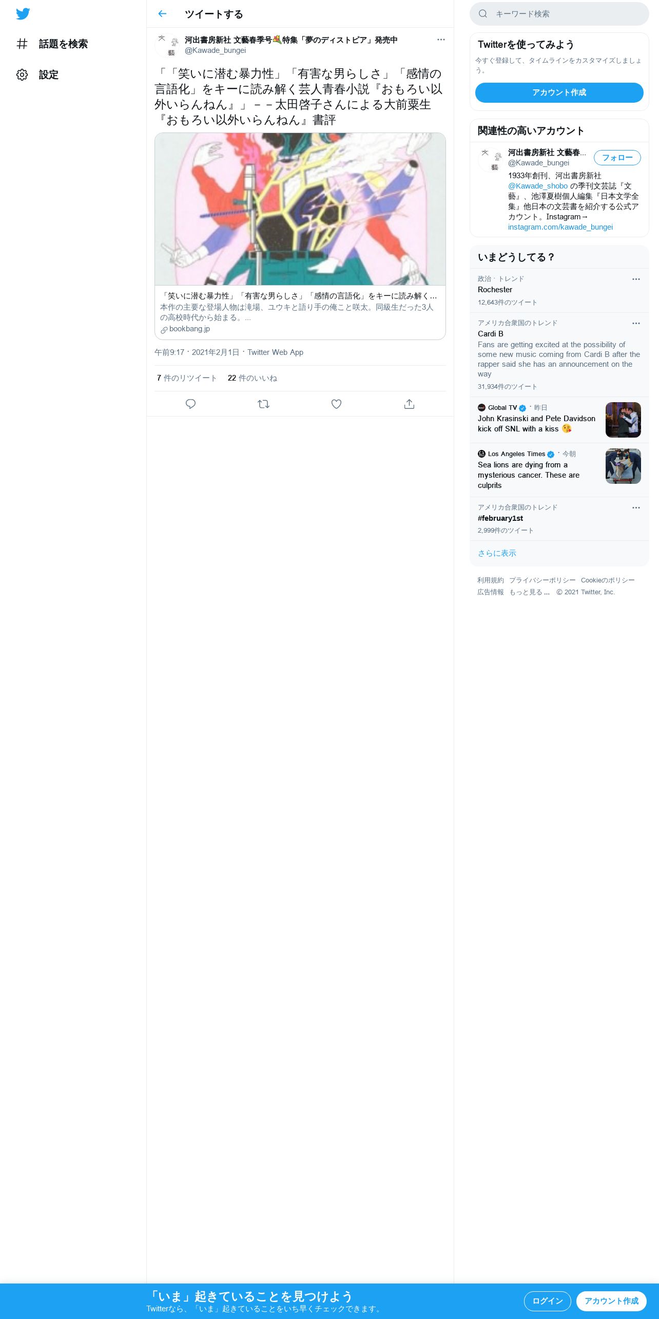 https://twitter.com:443/Kawade_bungei/status/1356169750024339456