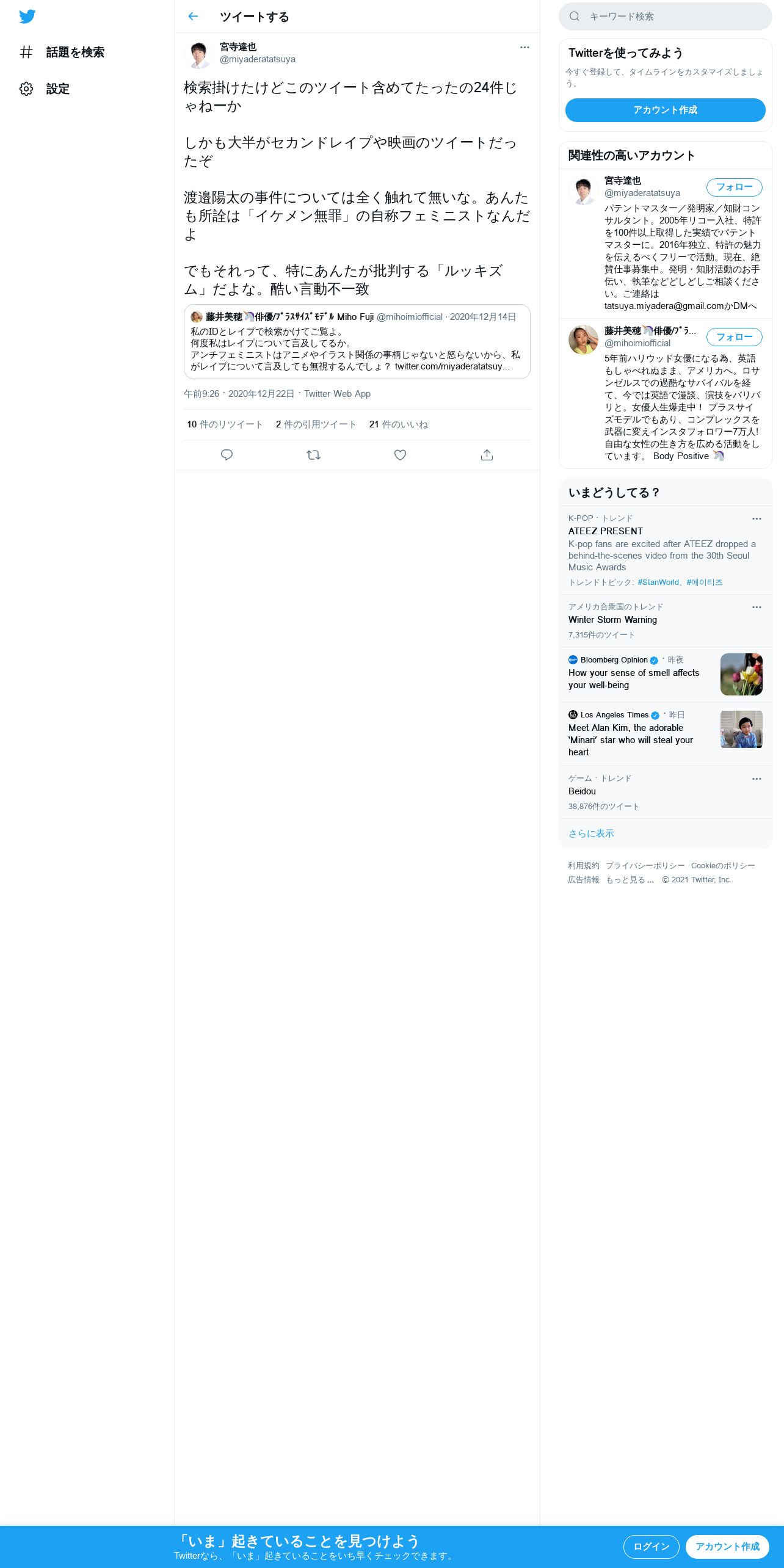 取得元URL: https://twitter.com:443/miyaderatatsuya/status/1341314055751958528