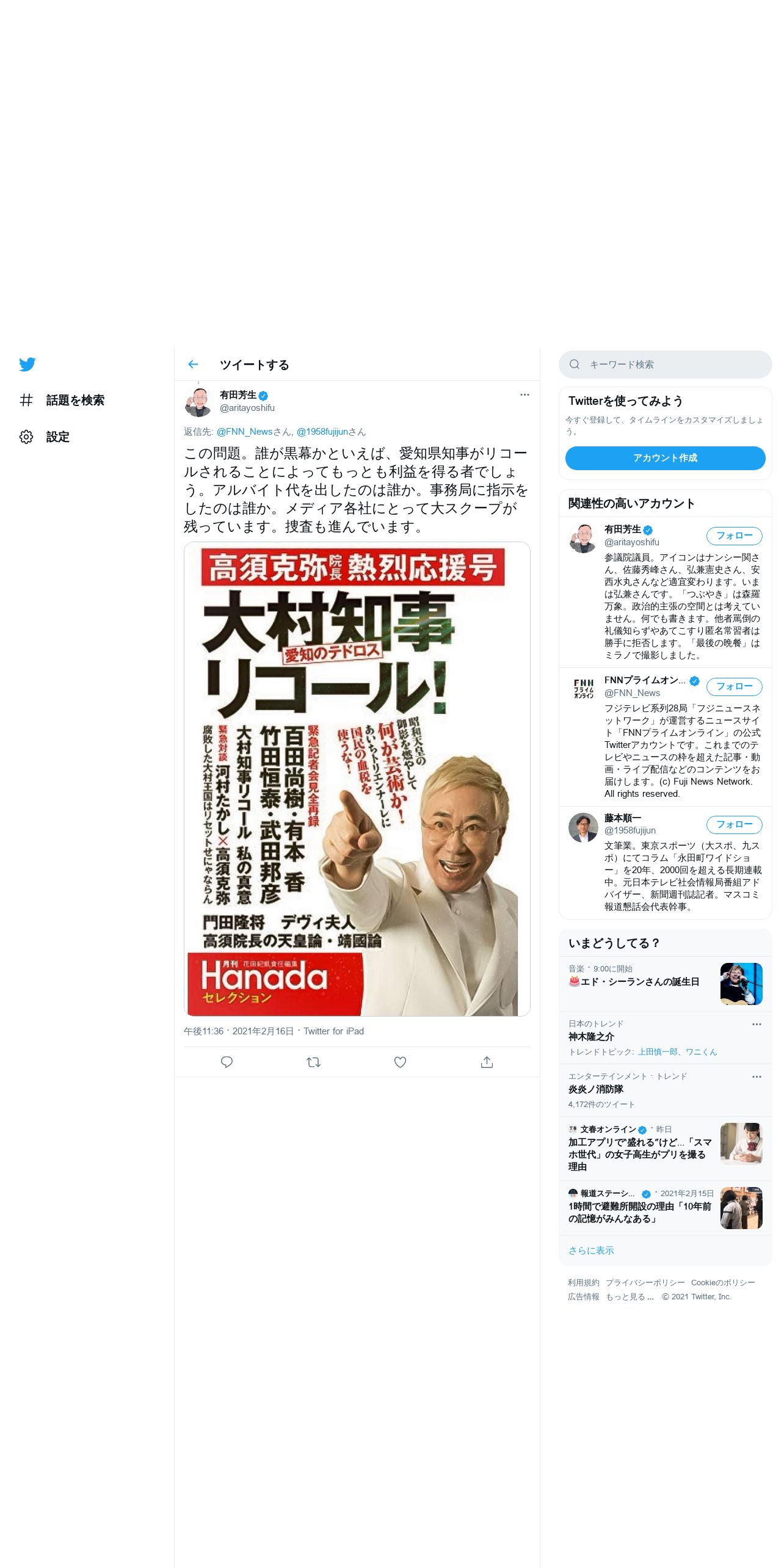 取得元URL: https://twitter.com:443/aritayoshifu/status/1361821698815795200