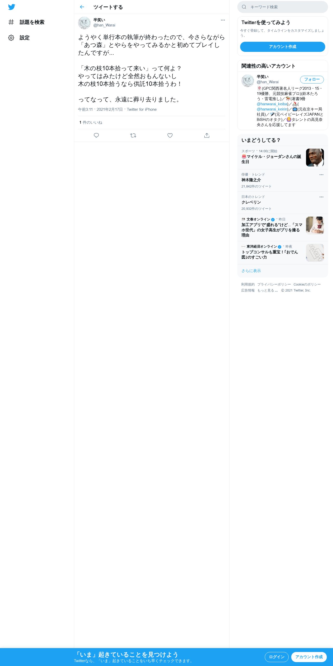 取得元URL: https://twitter.com:443/han_Warai/status/1361876003950264321