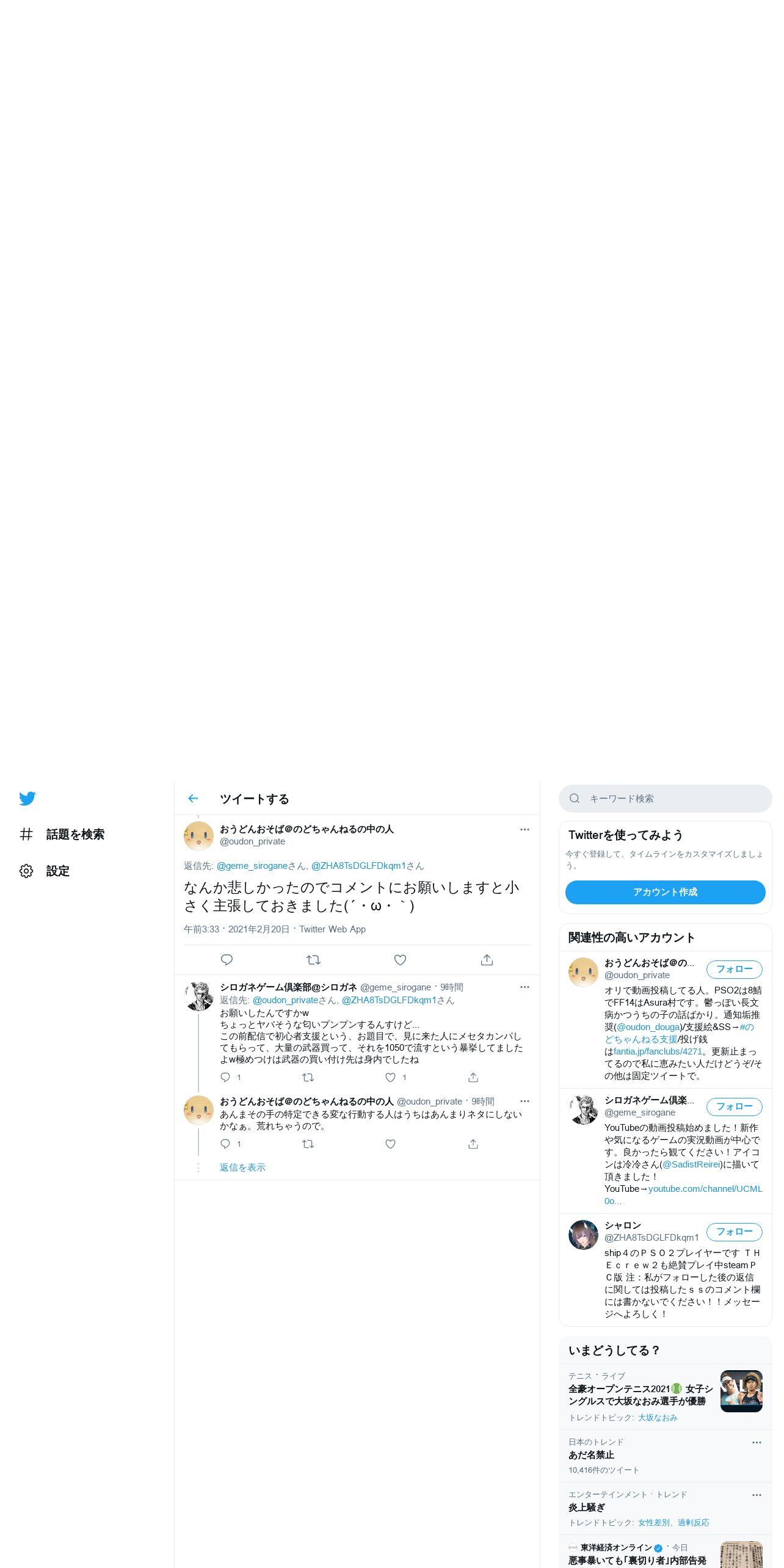 取得元URL: https://twitter.com:443/oudon_private/status/1362968714463776768