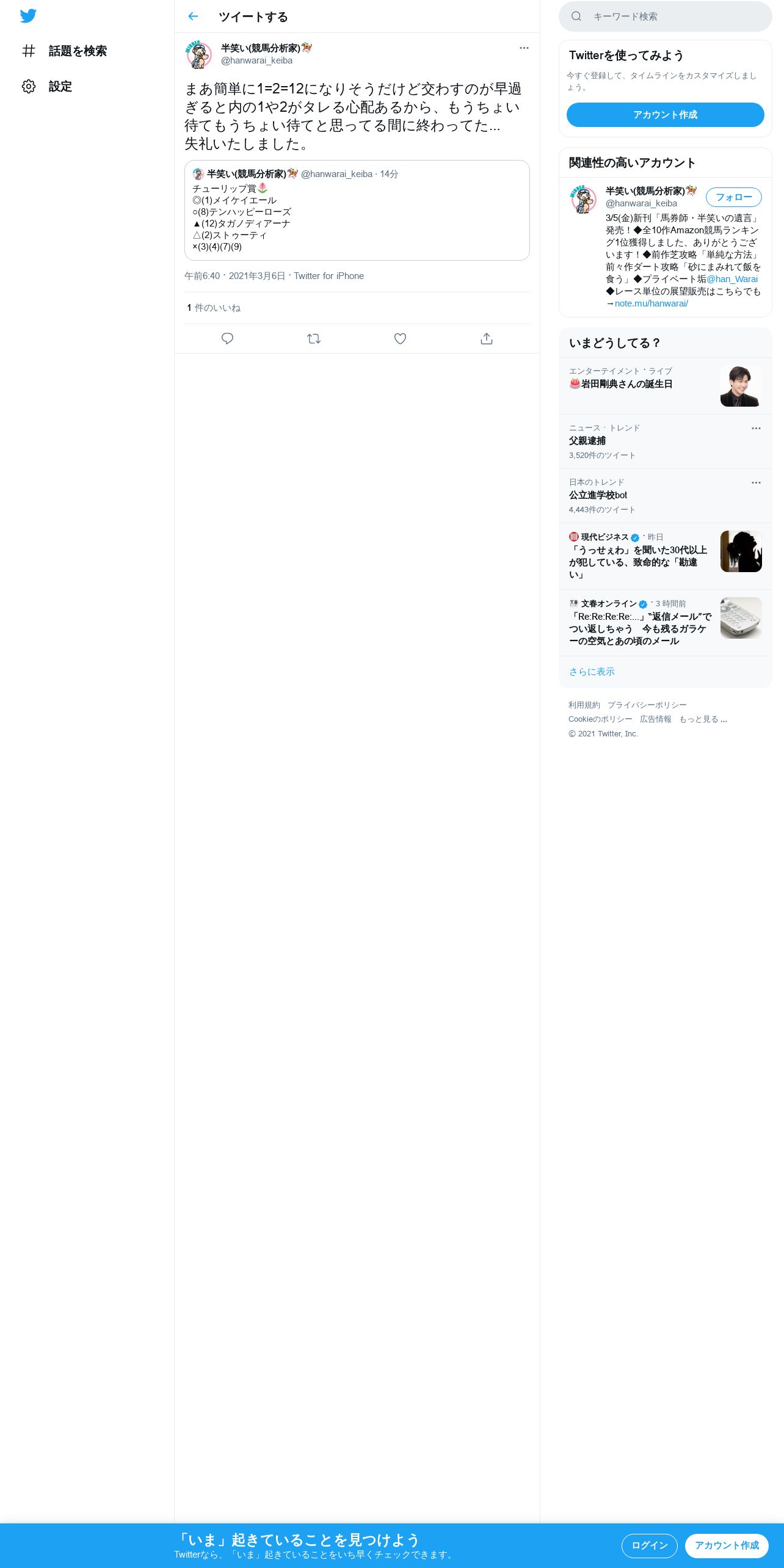 https://twitter.com:443/hanwarai_keiba/status/1368089058052771841