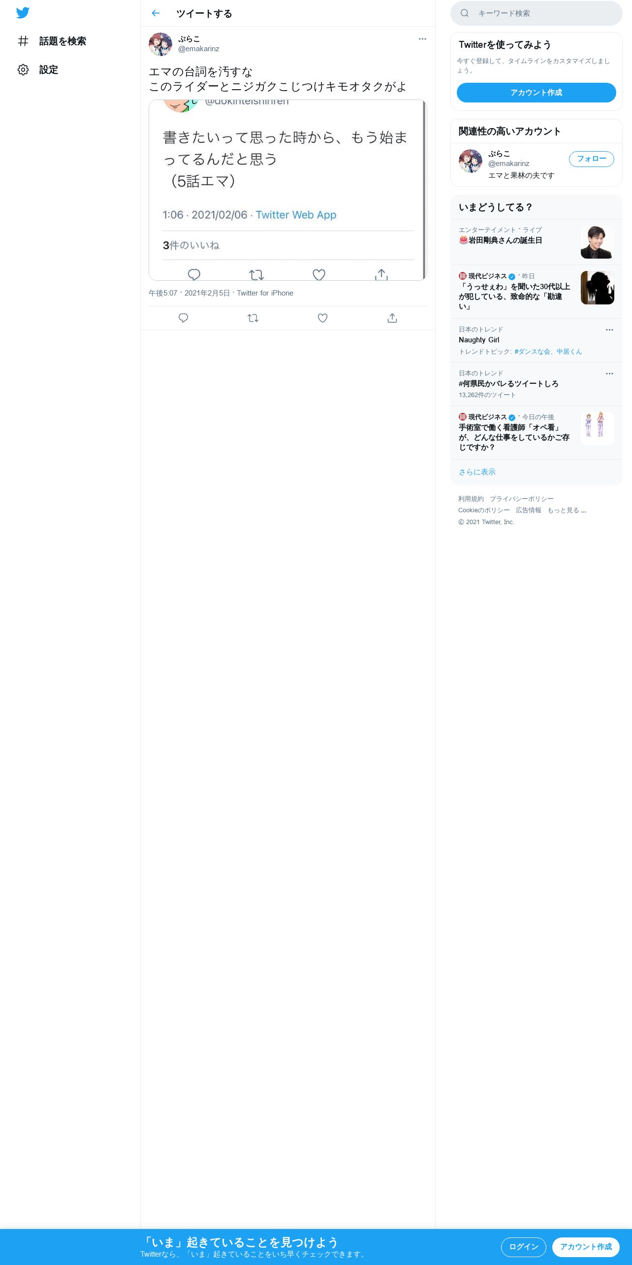 取得元URL: https://twitter.com:443/emakarinz/status/1357737676577800194