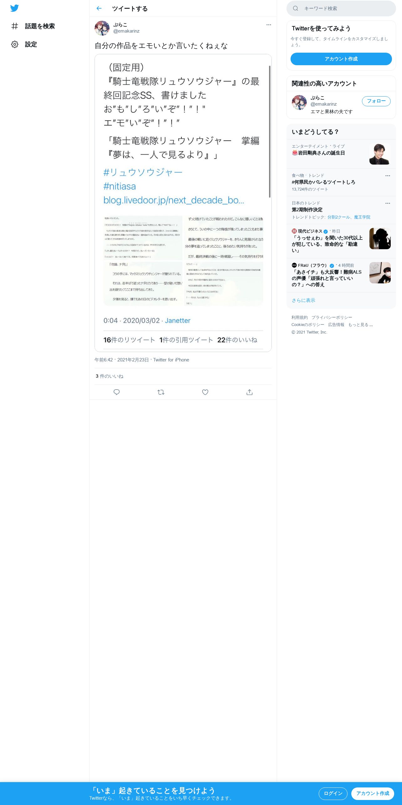 取得元URL: https://twitter.com:443/emakarinz/status/1364103415203160066
