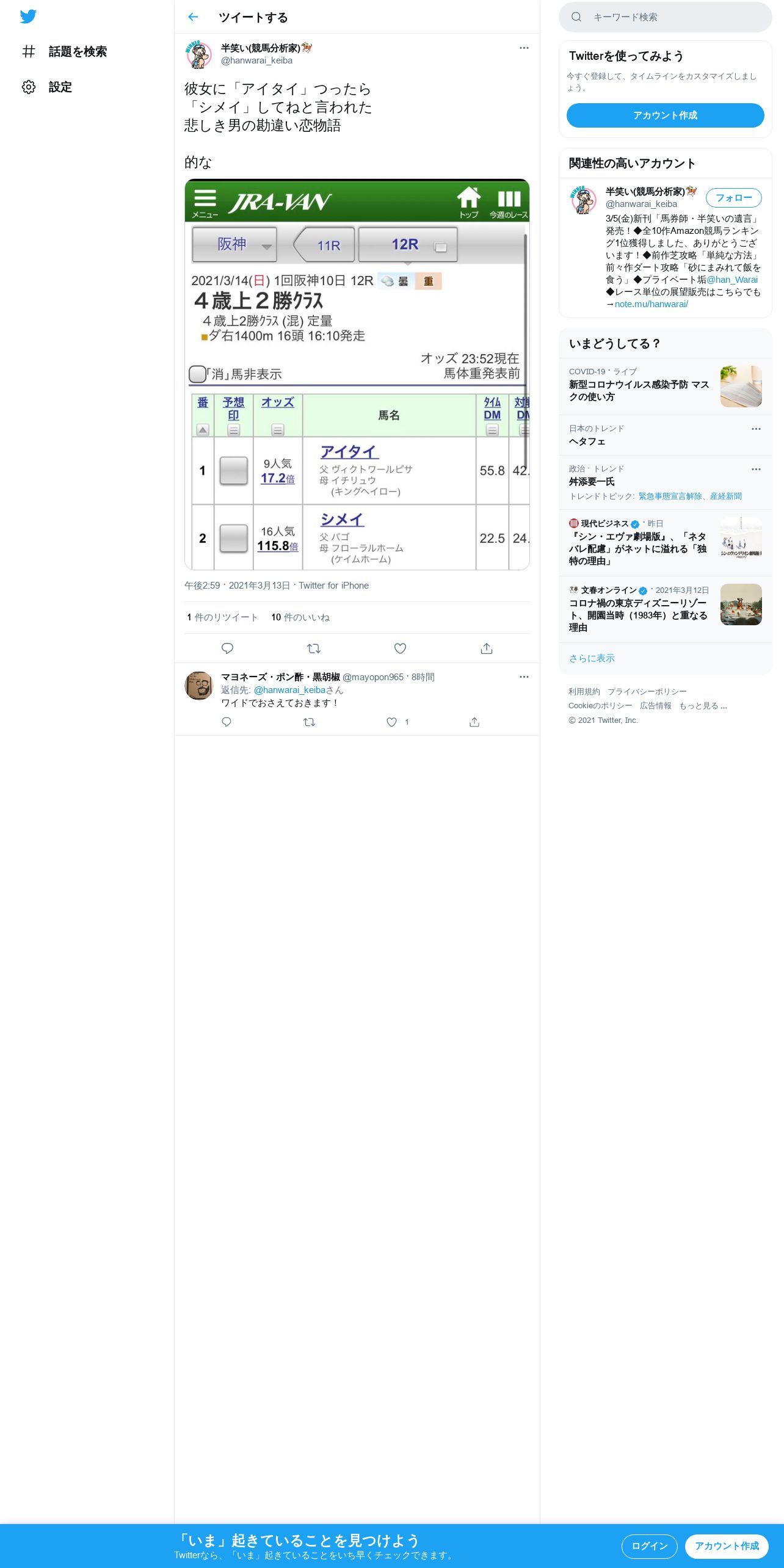 https://twitter.com:443/hanwarai_keiba/status/1370751496573231108