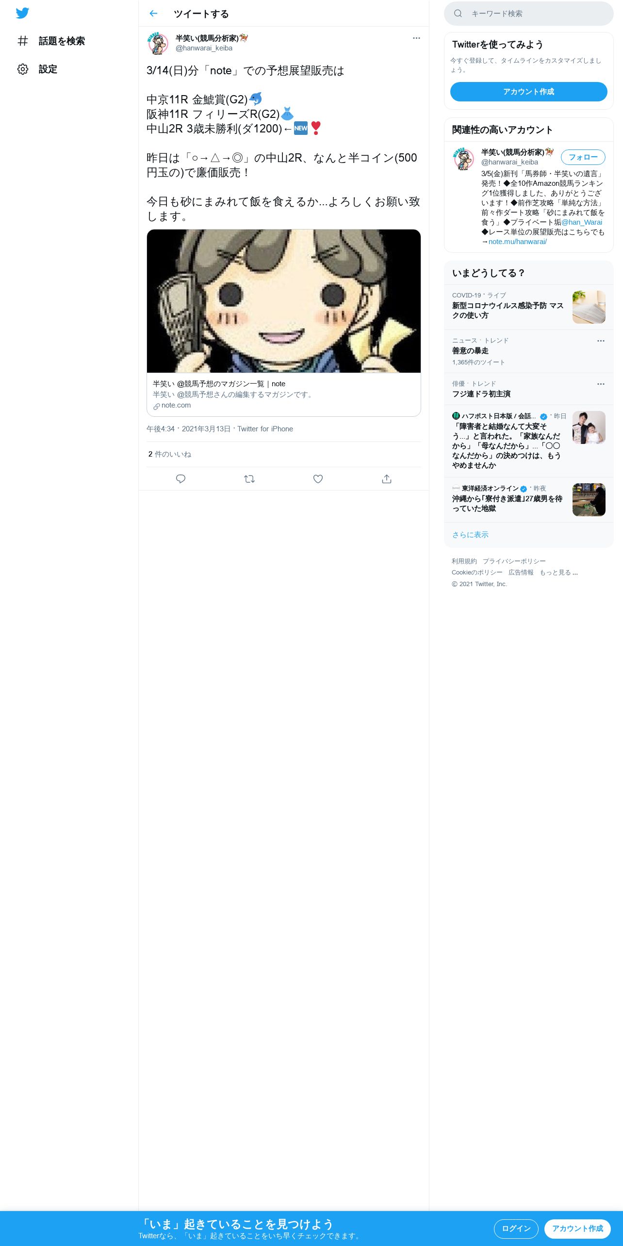 https://twitter.com:443/hanwarai_keiba/status/1370775219271471105