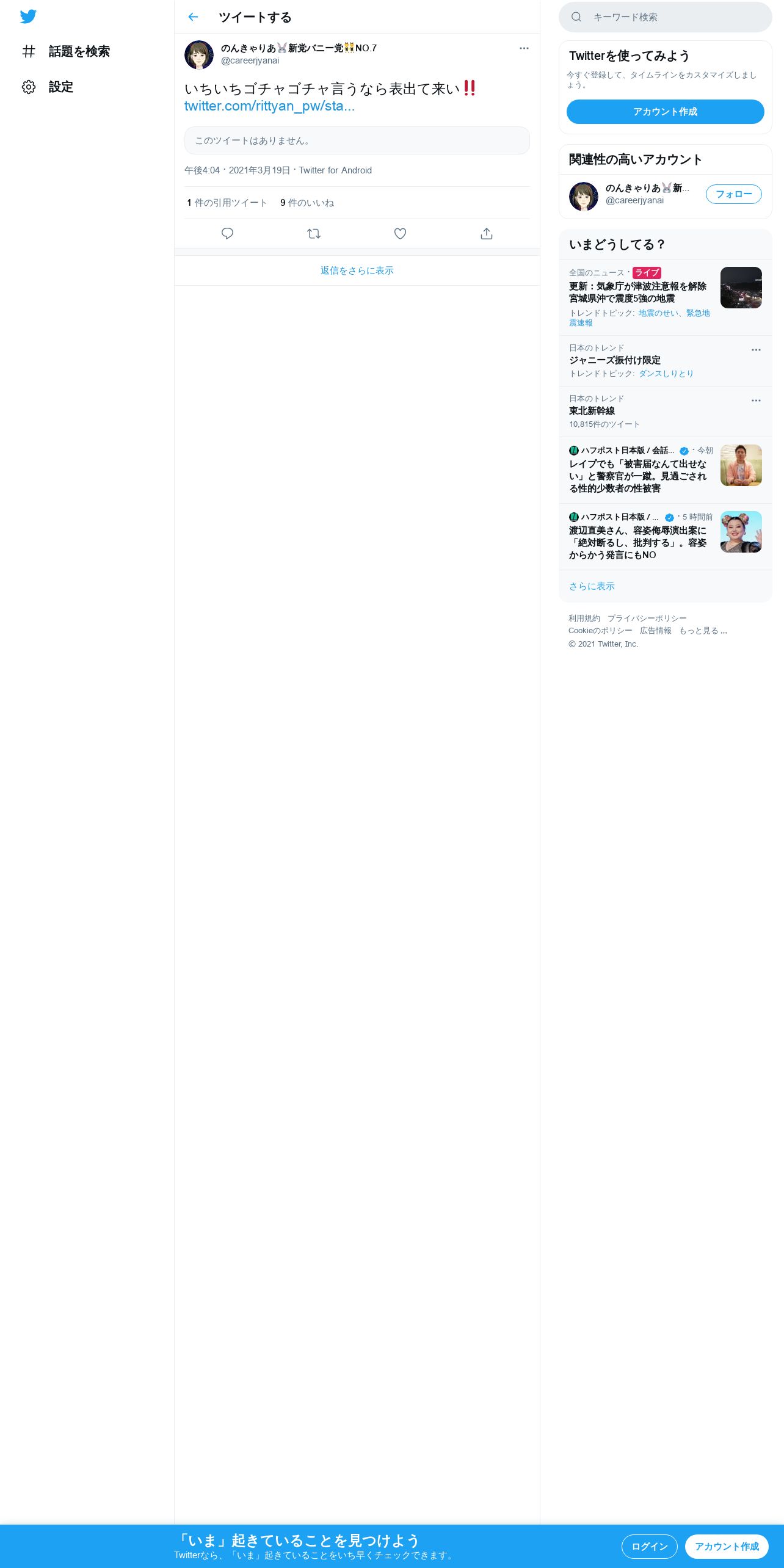 取得元URL: https://twitter.com:443/careerjyanai/status/1372942048517451783