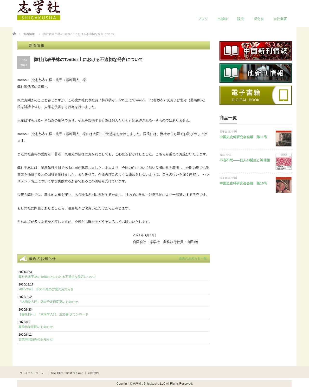 https://shigakusha.jp:443/news/apology/