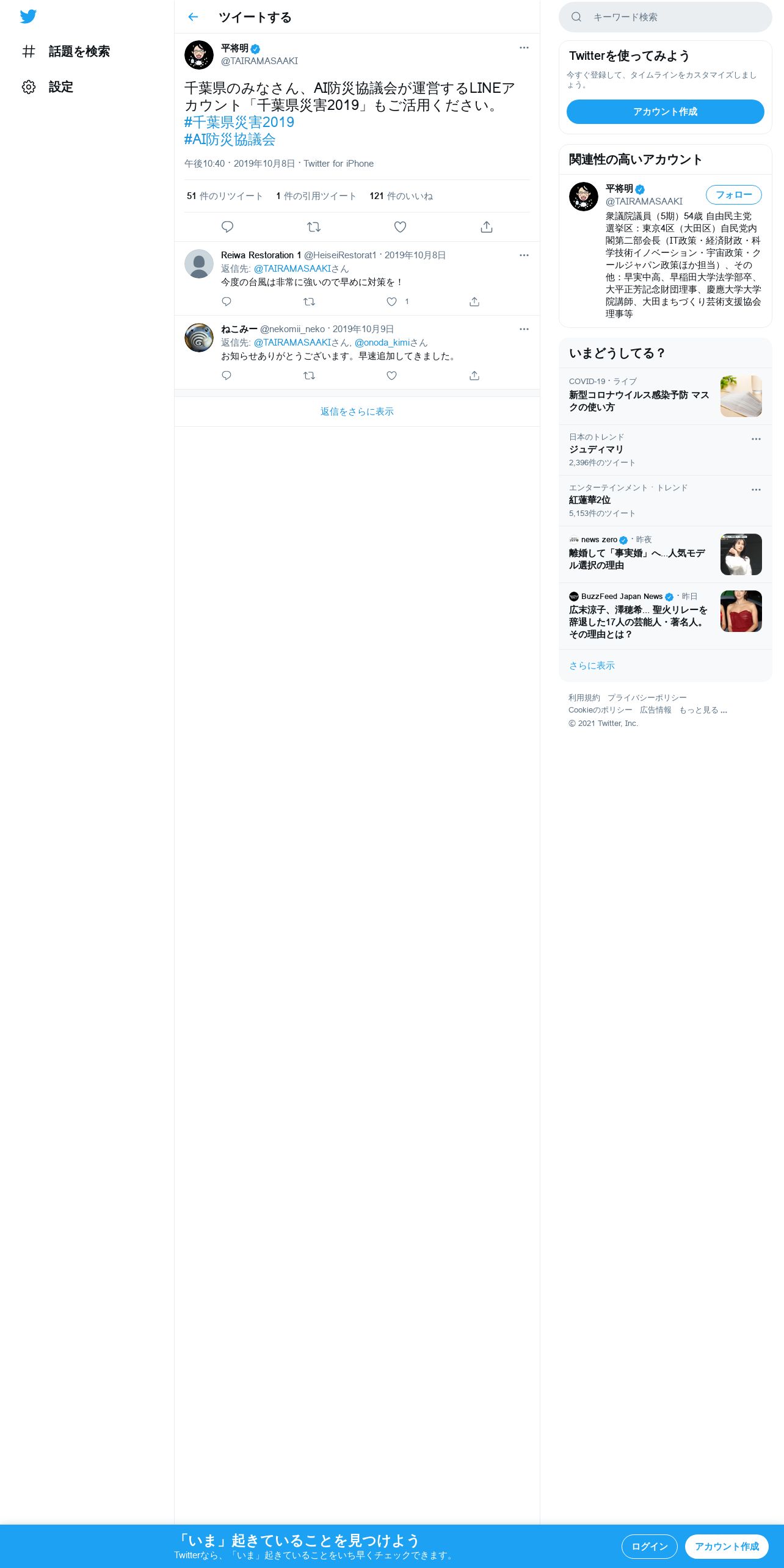 https://twitter.com:443/TAIRAMASAAKI/status/1181700955336654848