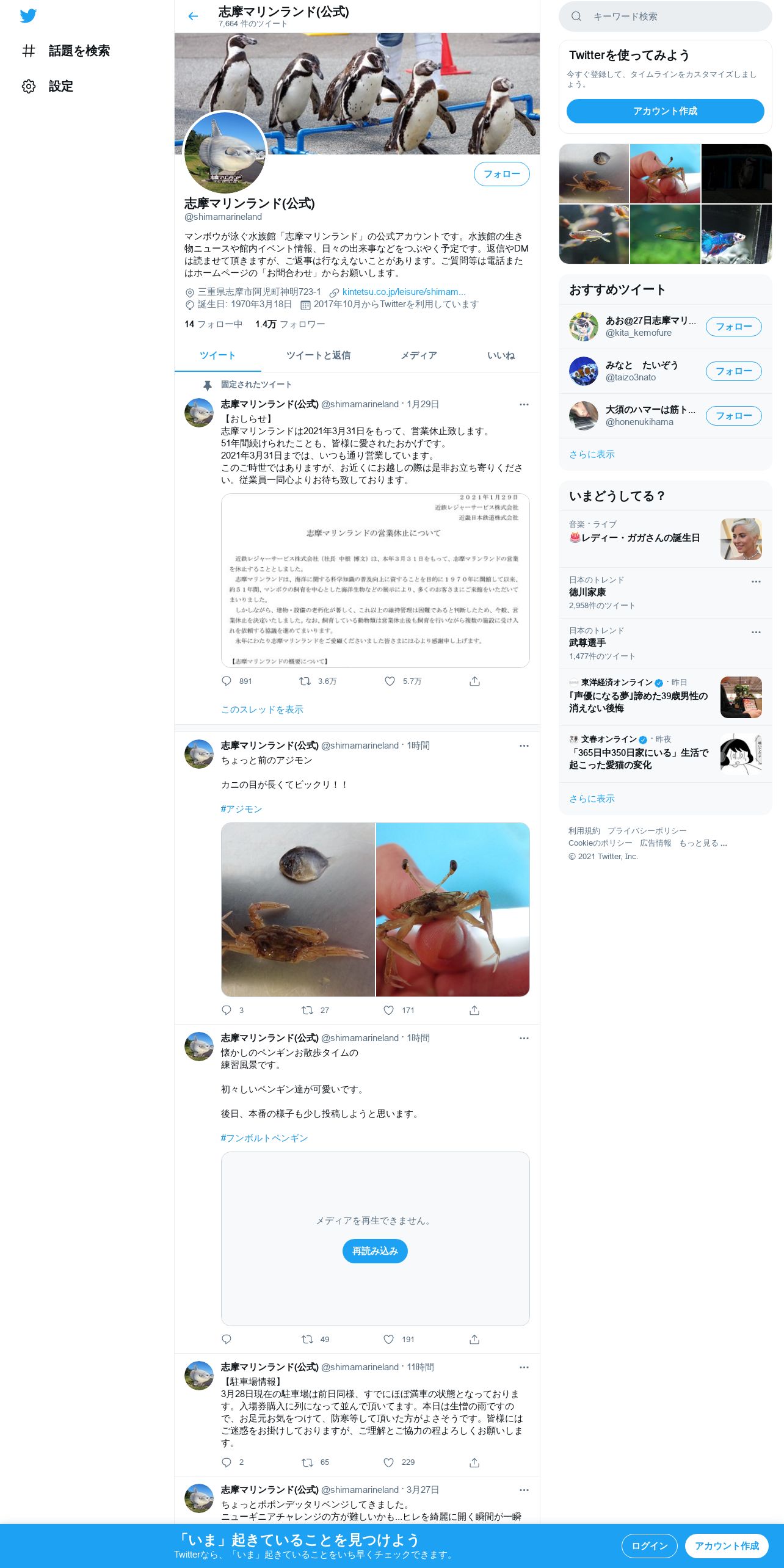 https://twitter.com:443/shimamarineland?lang=ja
