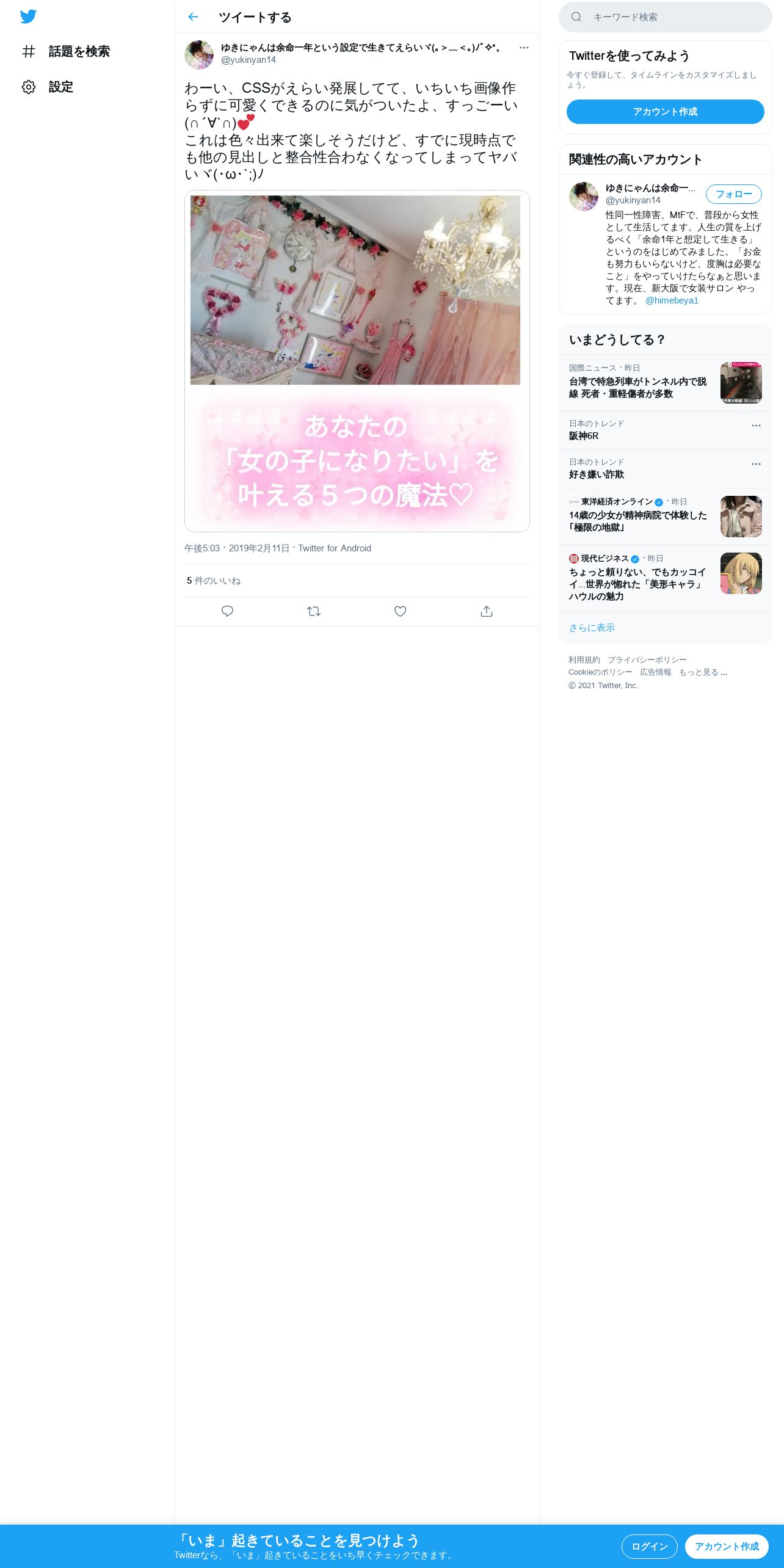 取得元URL: https://twitter.com:443/yukinyan14/status/1095005420370812928