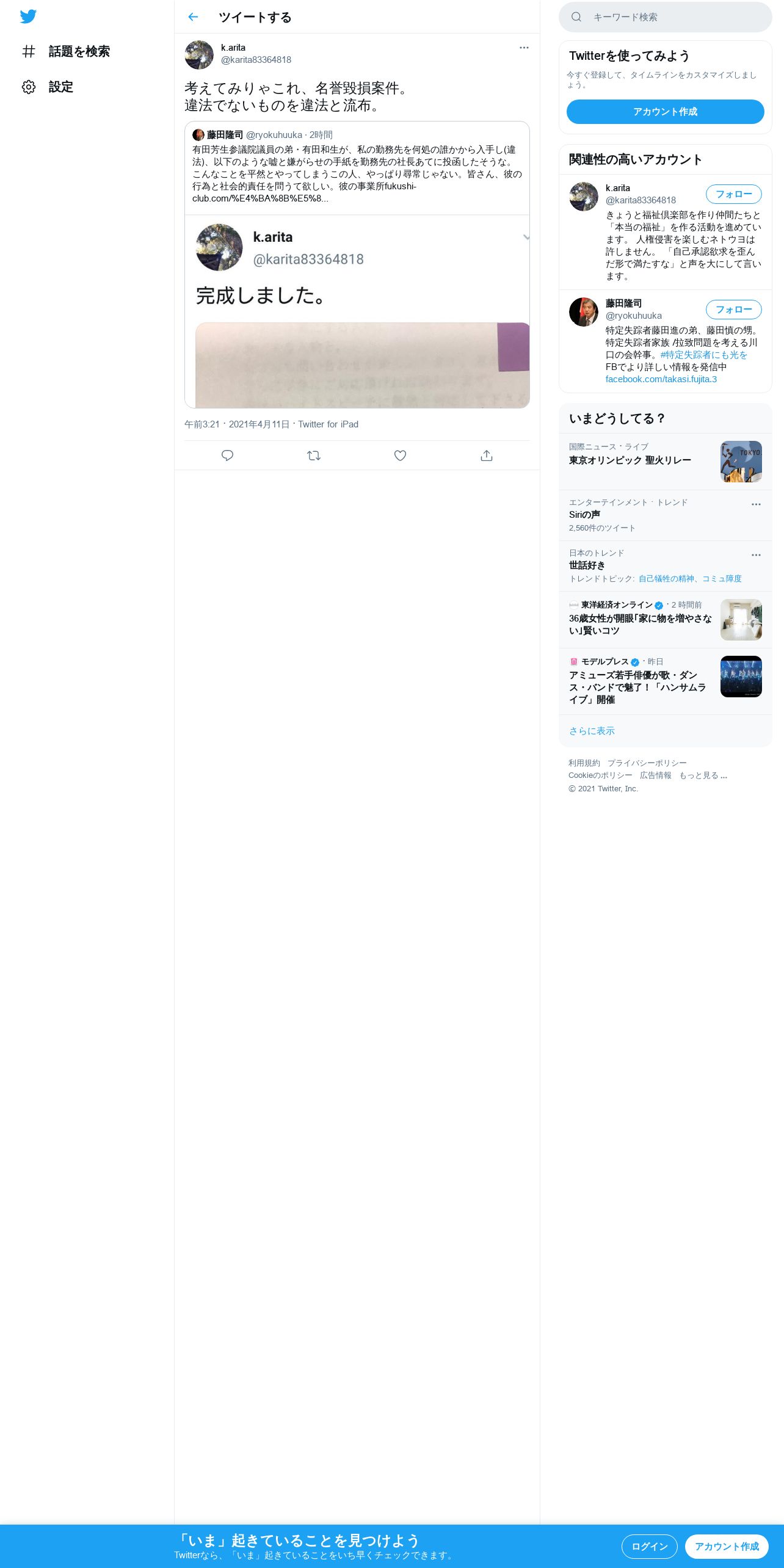 取得元URL: https://twitter.com:443/karita83364818/status/1381084862166134784
