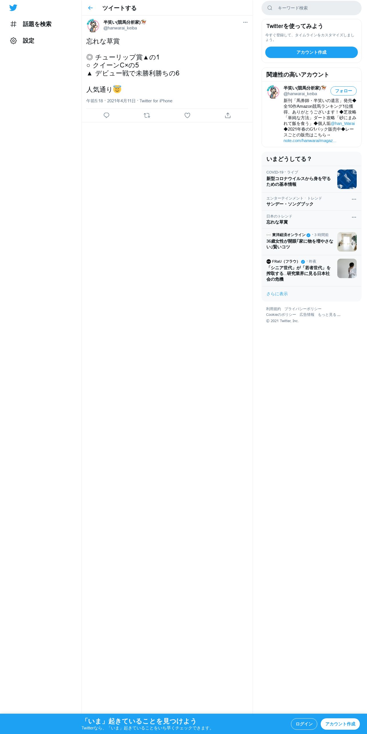 https://twitter.com:443/hanwarai_keiba/status/1381114399146958849