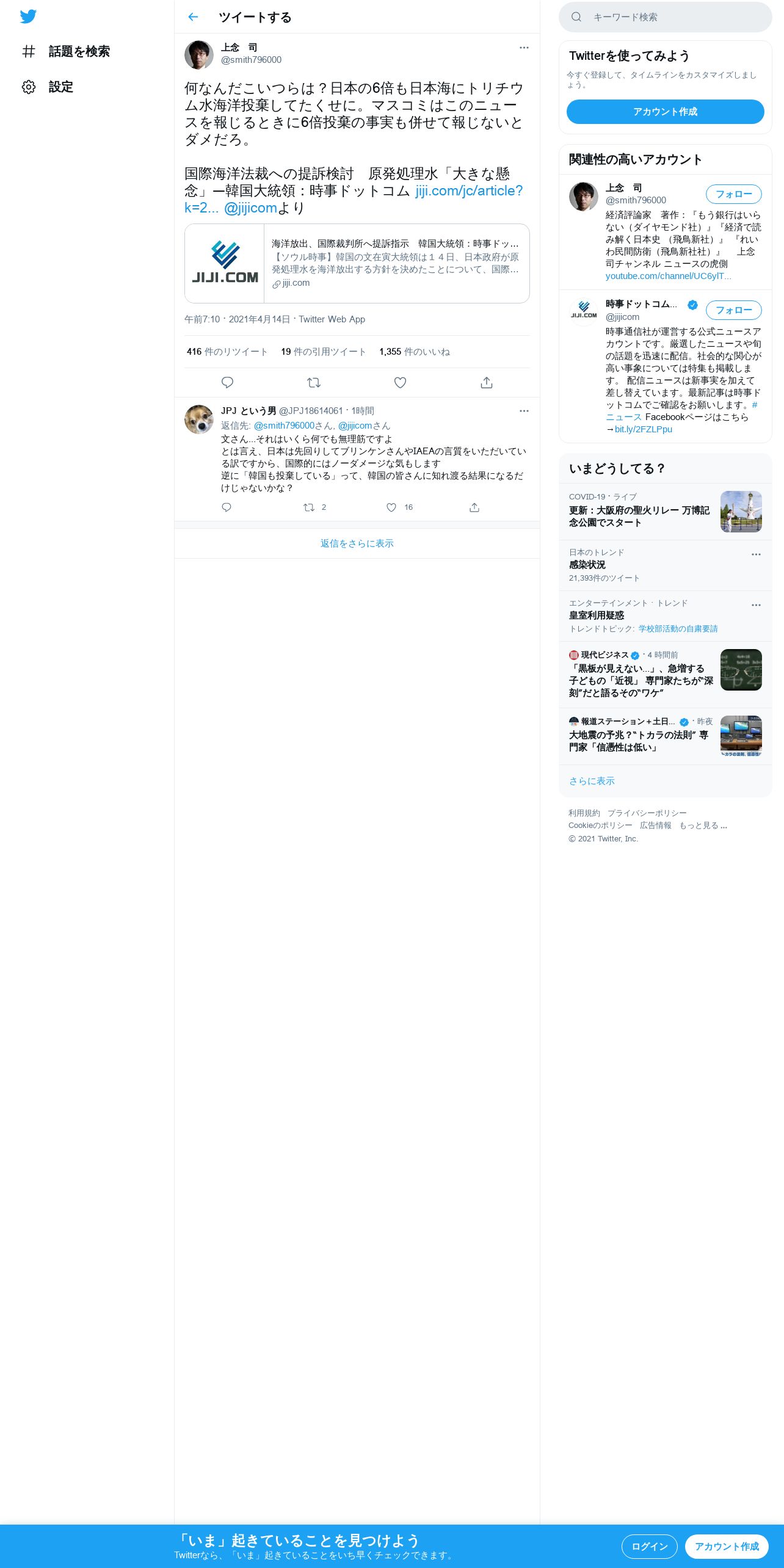 取得元URL: https://twitter.com:443/smith796000/status/1382229751503343616