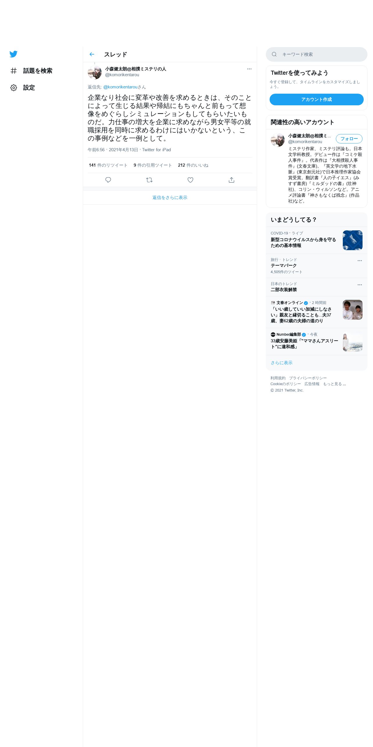 https://twitter.com:443/komorikentarou/status/1381863931468115969