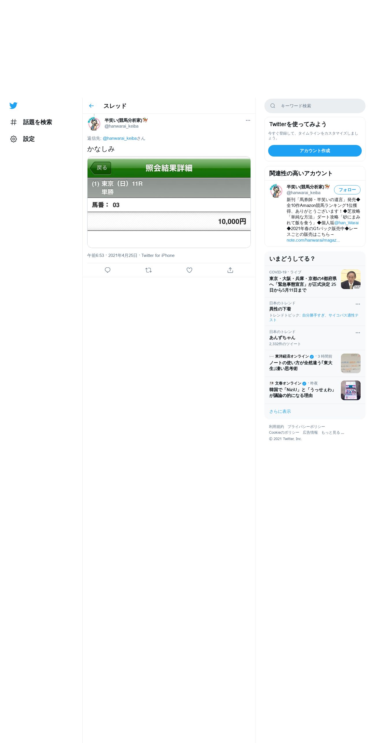 https://twitter.com:443/hanwarai_keiba/status/1386211778888048643