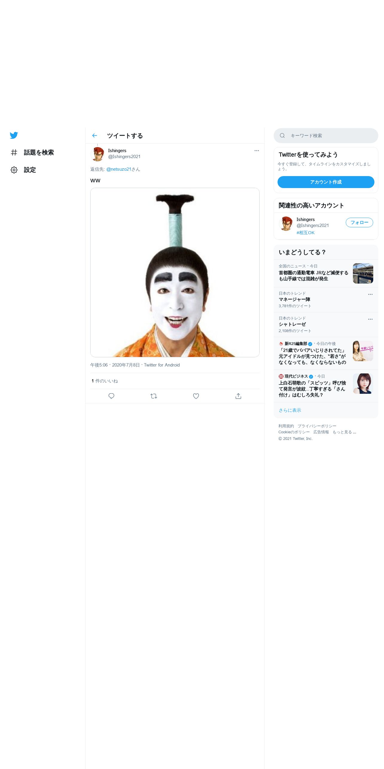 取得元URL: https://twitter.com:443/Ishingers2021/status/1280911164969369602