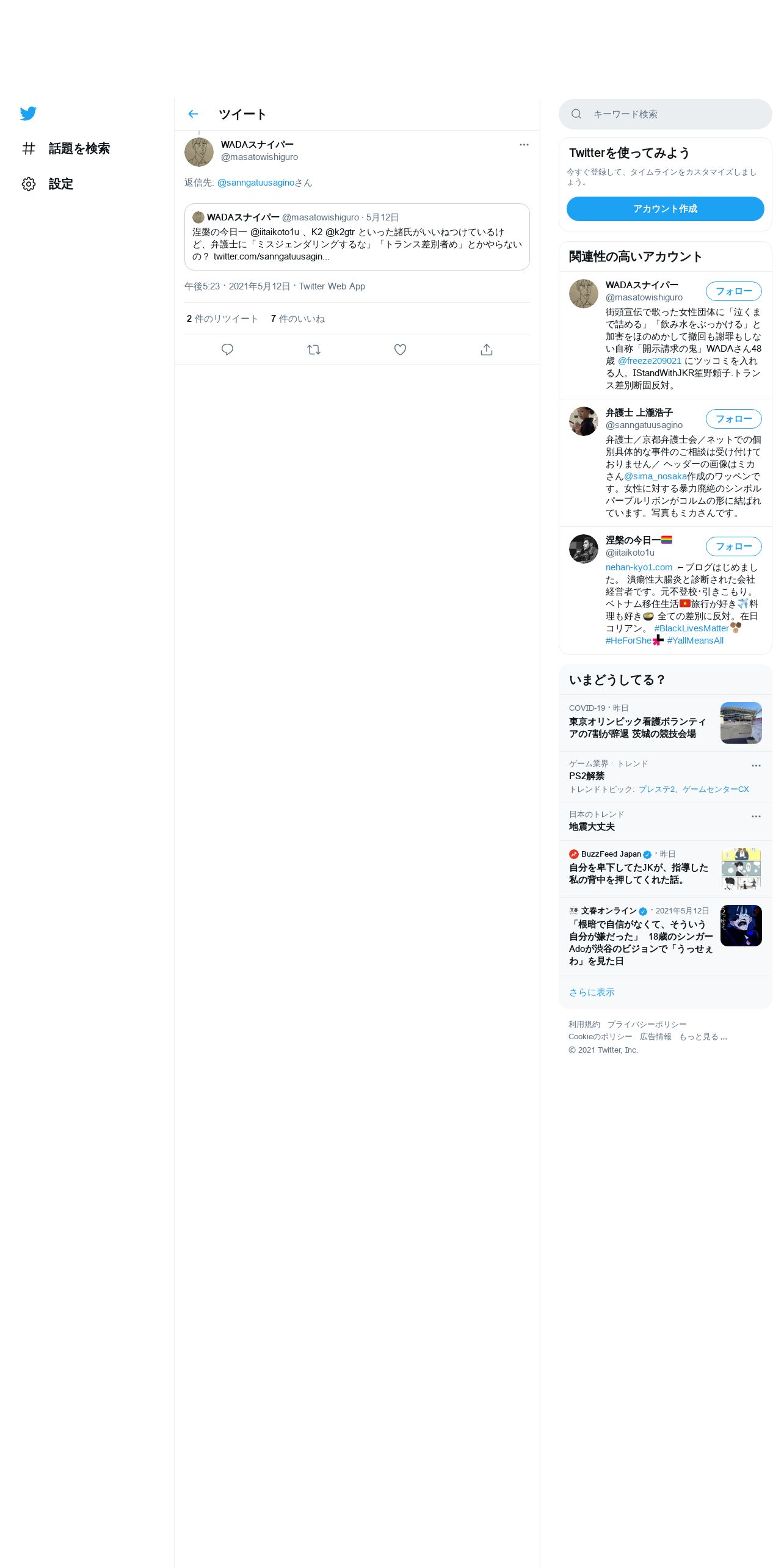 取得元URL: https://twitter.com:443/masatowishiguro/status/1392530871488368640